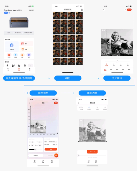 点击常用功能-图片-选择要雕刻的素材进入图片编辑页面-根据需求进行相应选择-点击下一步-进入图片预览界面-根据需求进行相应选择-点击雕刻-进入雕刻界面-点击运行,即可开始雕刻。