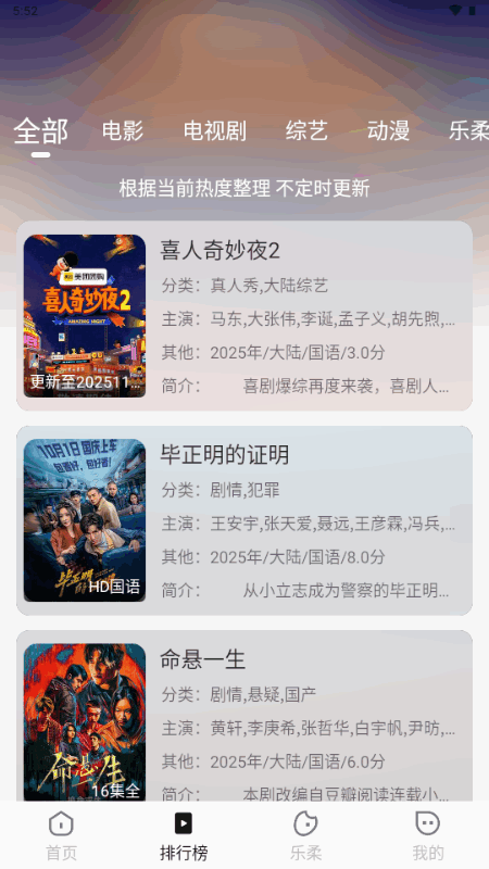 5、还会根据全网热度,实时整理出最新的影视排行榜单。
