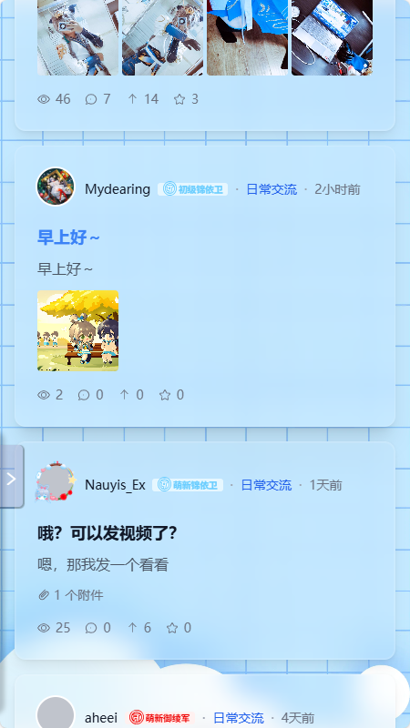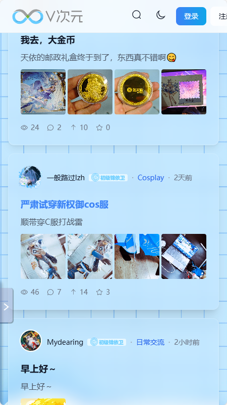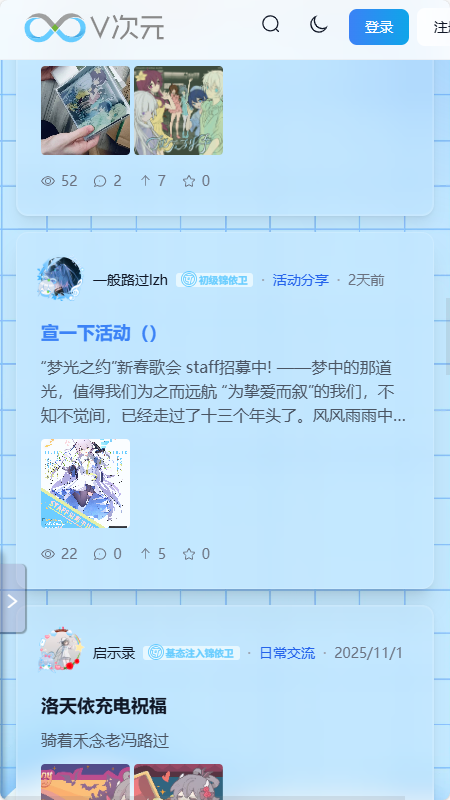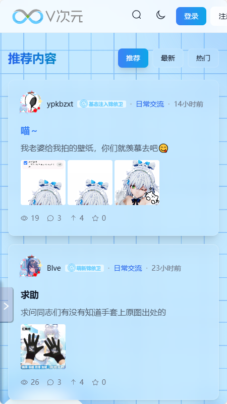 1、软件首页提供多种二次元帖子可以进行互动。