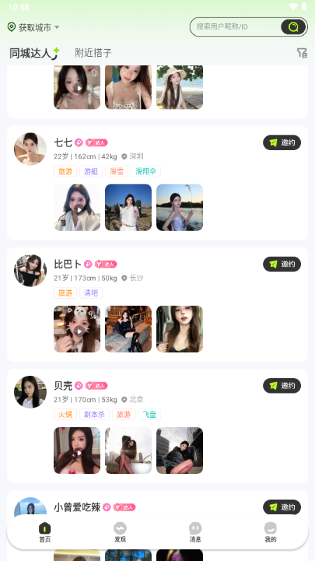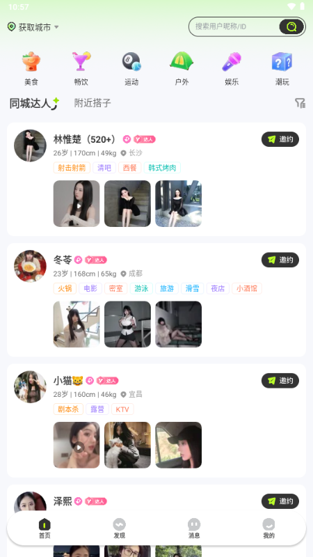 全新首页整合“同城达人”与“附近搭子”双入口,支持按美食、畅饮、运动等兴趣分类精准筛选,快速发现心仪伙伴。