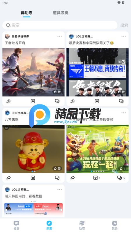 4、在“探索”界面的“群动态”板块,可浏览各类游戏相关动态。