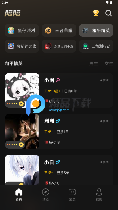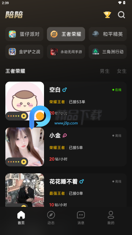 编辑点评:游戏陪玩平台,为用户提供接单,点单,游戏组队功能