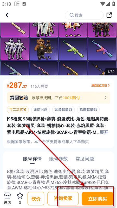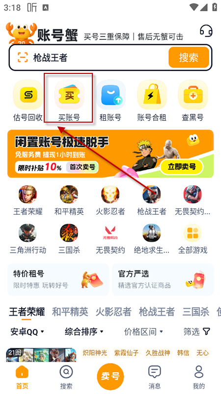 进入首页,点击“买号”板块,选择目标游戏;