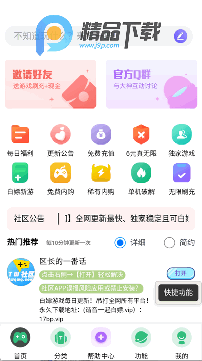2、资源多样:提供众多类型的游戏,包括休闲益智、角色扮演、动作冒险等,满足不同用户的喜好。同时,平台会及时更新游戏动态和活动信息,让用户第一时间掌握最新内容 。