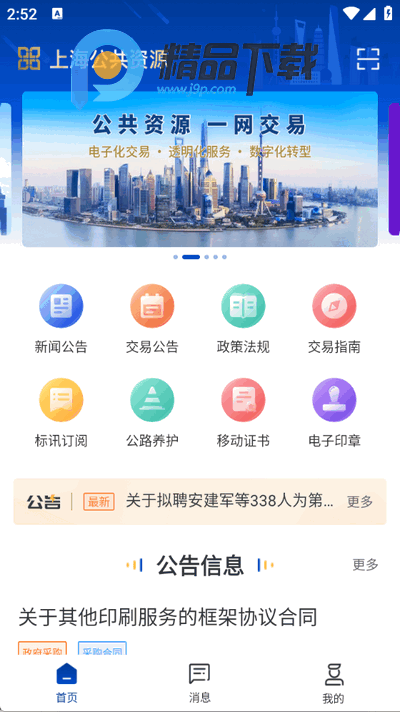 3:进入APP首页,可选择“新闻公告”“交易公告”“政策法规”“交易指南”等功能入口。