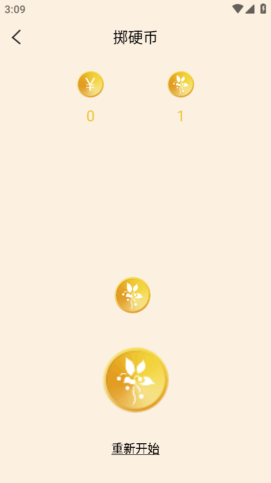 2、进入页面,选择下方的硬币即可开始抛硬币。