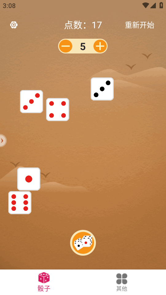 2、进入软件就是摇骰子画面,点上方的+-可以选择骰子的数量。