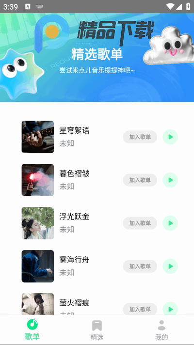 4、精选了很多音乐资源,随时播放,喜欢的音乐也可以加入歌单。
