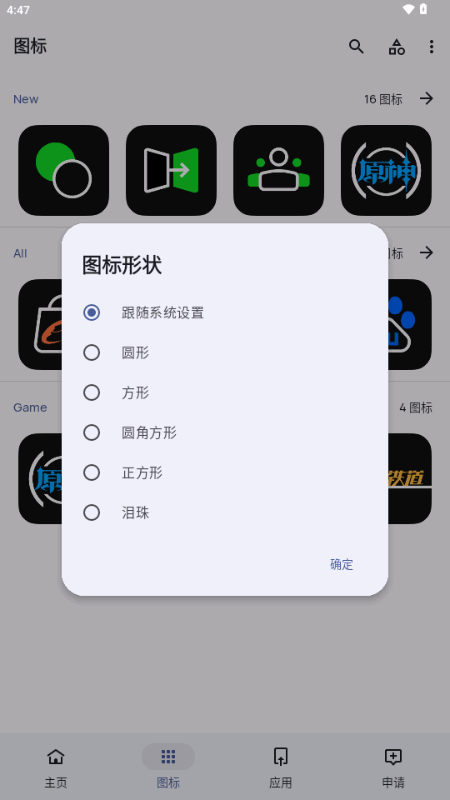 你需要一个支持图标包的启动器。可以在本应用程序的“应用图标”页面中,或者 Play 商店的描述中找到受支持的启动器列表,如何应用图标包?