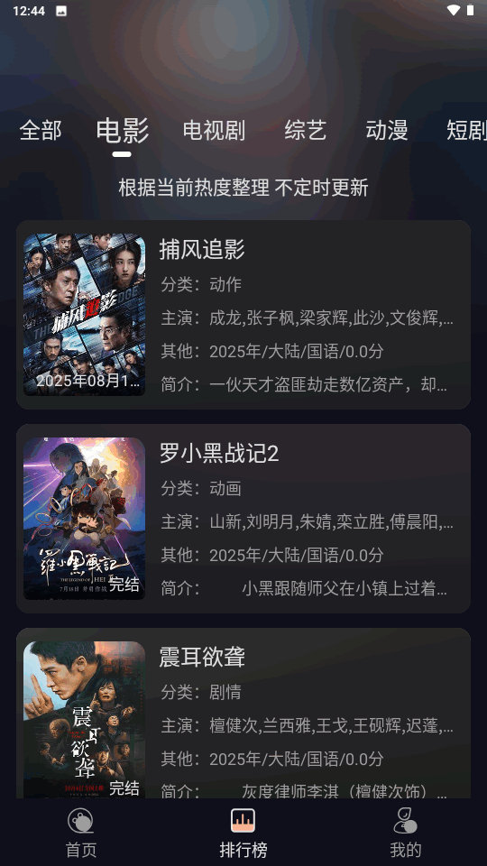 4、在排行榜页面可实时查看最新影视热门排行榜。