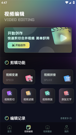 2.全面编辑功能,涵盖视频速度、拼接、剪切、改变环境、添加滤镜等。
