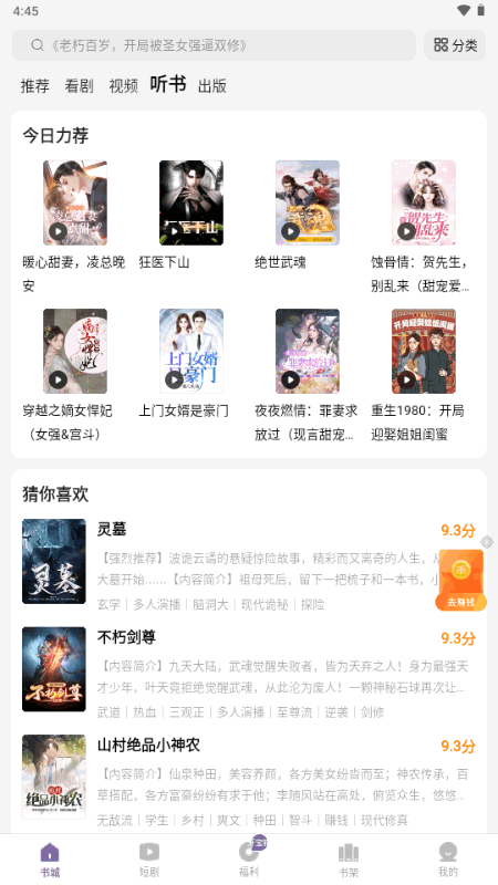 沐香听书 APP是一款功能强大的手机听书软件,拥有丰富的有声资源库,涵盖都市言情、玄幻奇幻、悬疑推理等多种类型,满足不同年龄段用户的多样化需求。它支持高清音质播放,用户可以根据网络状况自由调节音质,享受清晰流畅的听书体验。