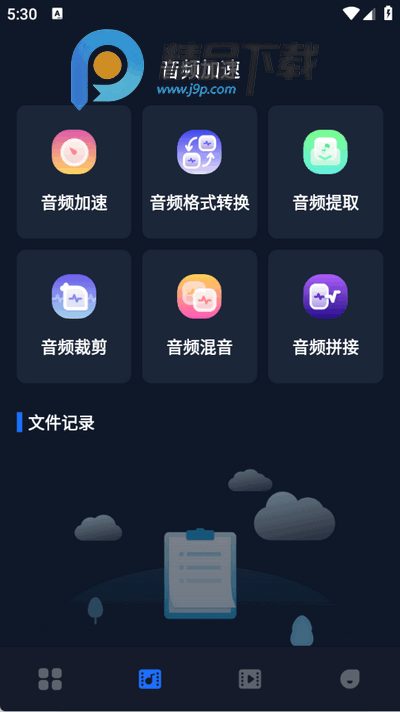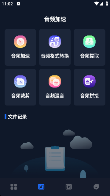 5:切换到音频处理板块,可选择“音频加速”“音频格式转换”“音频提取”“音频裁剪”“音频混音”“音频拼接”等功能,处理音频文件。