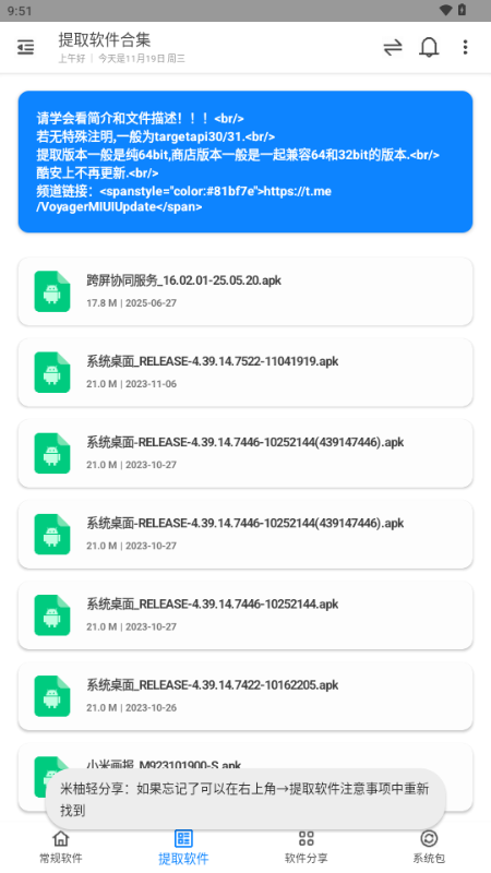 1.开发版内测提取的软件都是不稳定的,可能存在闪退/打不开/频繁报错的情况,稳定版用户请谨慎下载安装,出现问题的风险比开发版大。