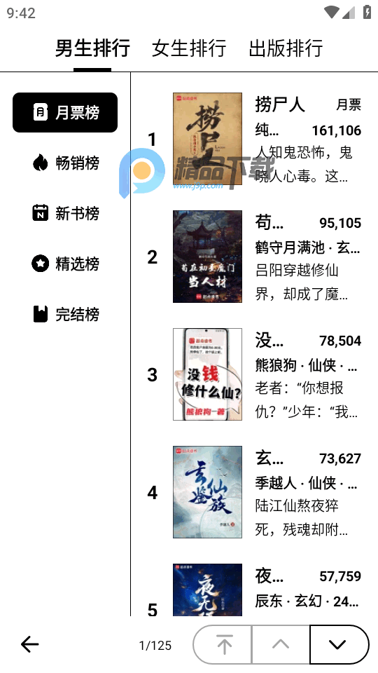 3、在书城可以看到有男生,女生及出版,还支持搜索和分类。