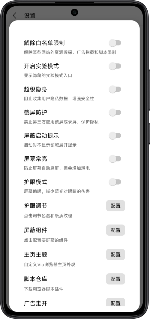 Via浏览器是安卓相当好用的浏览器之一,拥有着轻量化,快速这简单和安全的特性,为了让用户更好的使用Via浏览器,网友自制的BetterVia模块可以帮助用户更好的使用所有功能,支持护眼,屏蔽组件,一键更换主题,解除白名单限制和超级隐身等操作。