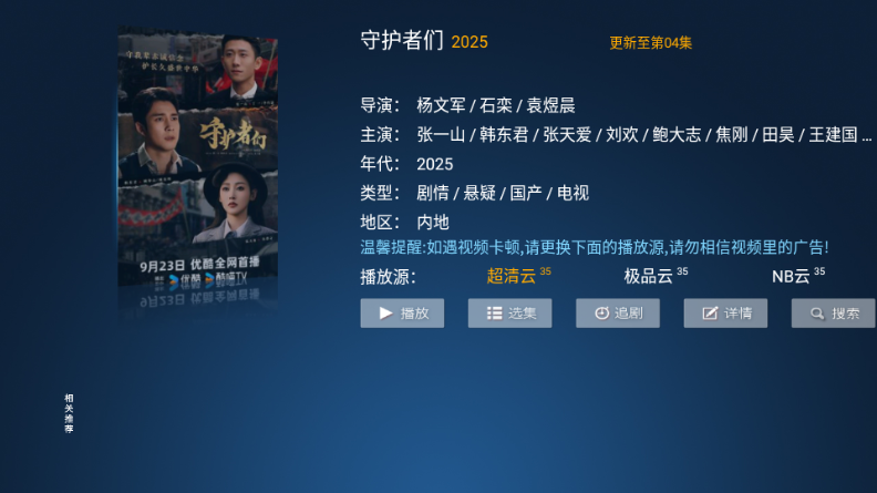 6、点开直接跳转播放,可以调整播放源和观看集数。