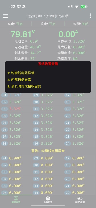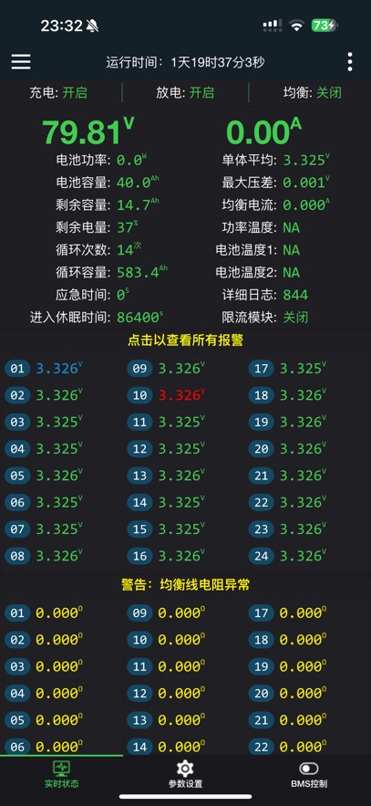 保护板激活后,请检查BMS控制页面里的充电开关、放电开关和均衡开关是否打开。