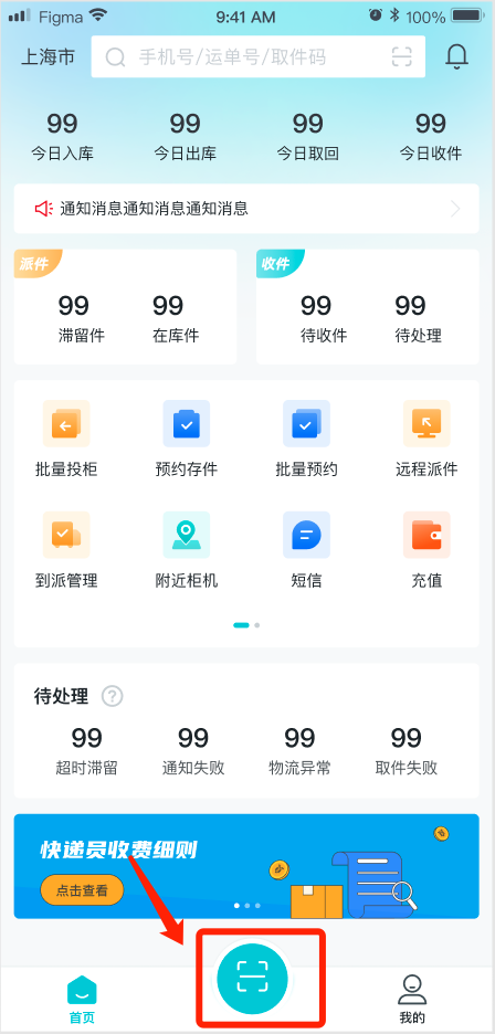 进入快递员首页后,点击“派件”模块;进入存件页面