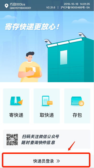 调出扫描页面后,进入柜机“快递员登录”页面,扫描页面二维码