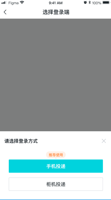 方式一:使用欢猫智柜快递员版 APP 扫描柜机二维码,选择登录方式时,选择柜机投递,柜机即可跳转到“快递员首页”
