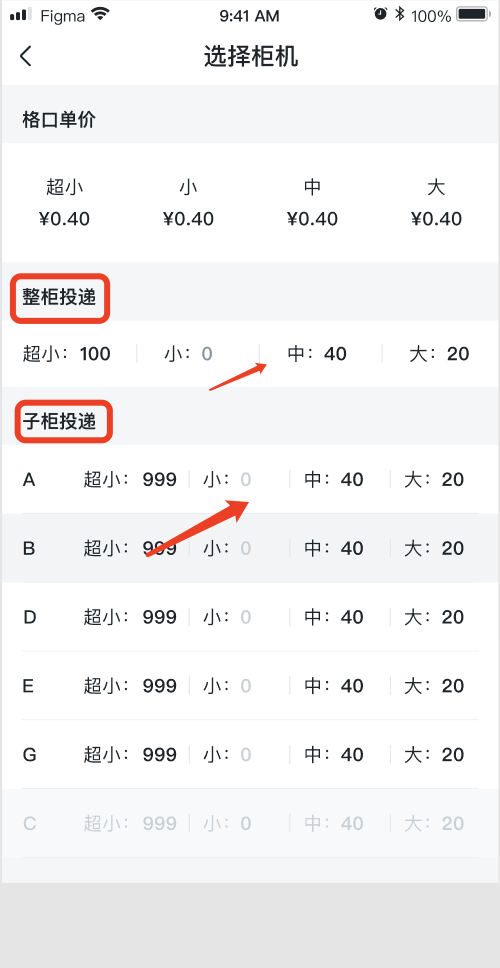 选择 手机投递 后打开柜机选择页,选择整柜或子柜投递