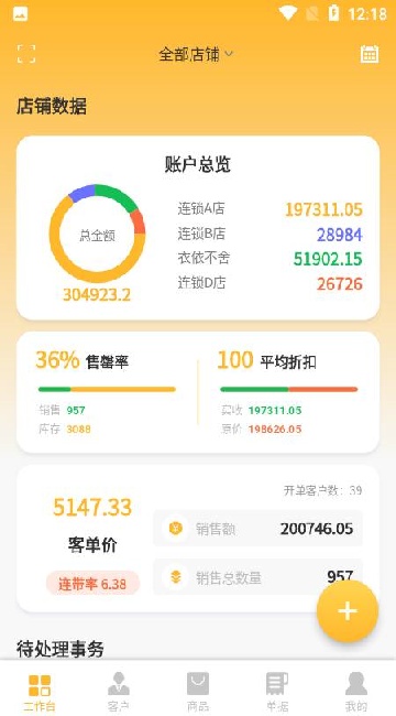 1、可追踪单品销售排行与员工业绩完成度,帮助商家了解销售情况。