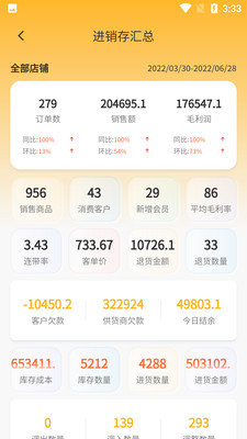 - 提供销量、库存、利润、账款、会员情况等核心关键数据统计分析