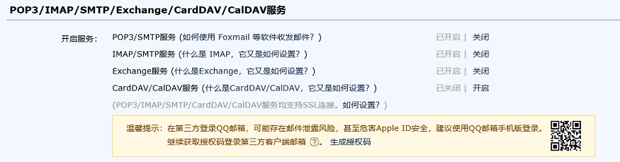 开启IMAP或POP服务,可收取邮件;开启CardDAV服务可以同步通讯录。
