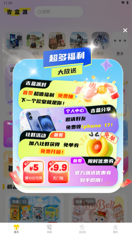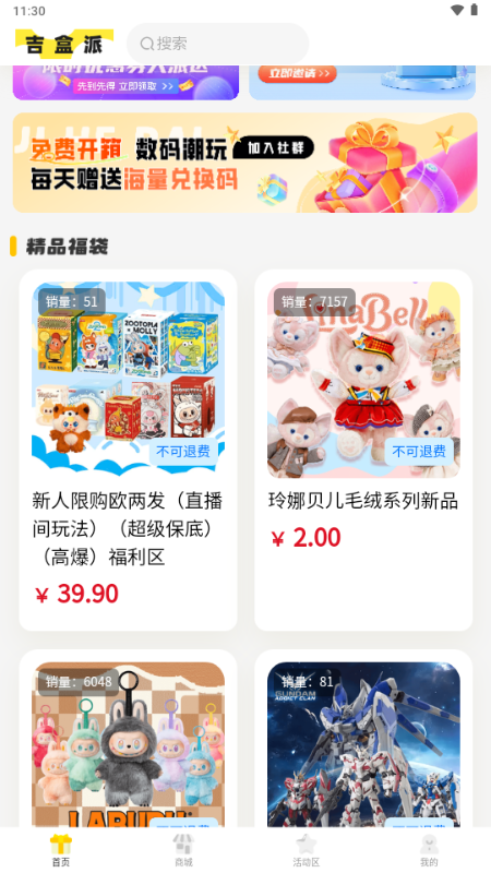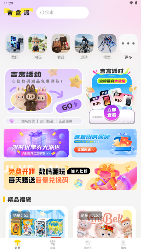吉盒派是一款潮玩数码盲盒平台,汇聚了各类潮玩饰品 IP、热门手办模型和最新数码产品。用户可以在线开盒,享受正品好物福袋和稀有款隐藏款的惊喜,平台承诺正品保障和超速发货。新人注册即享优惠券礼包,经典 IP 和新品数码等超多好物等你带走。