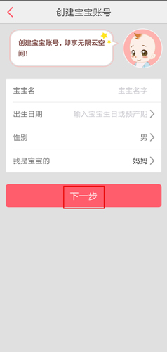 4、登陆之后,就要创建宝宝账号了,之后的资料是需要家长进行填写了。