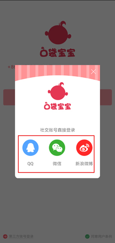 口袋宝宝是有两种登陆方式,一种是由手机号码直接登陆,另一种就是通过其他社交账号登陆。