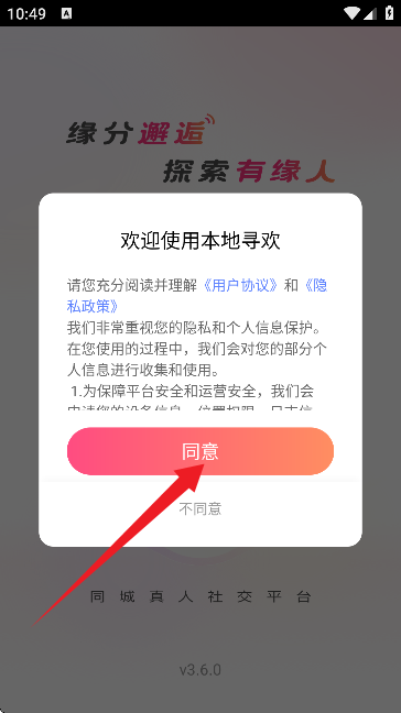 2、首先请同意用户协议和隐私政策。