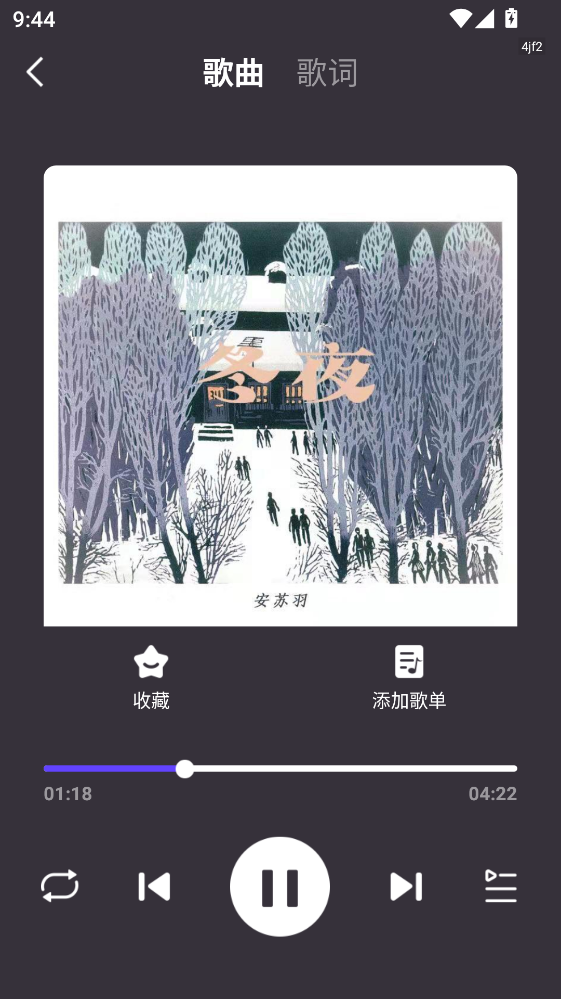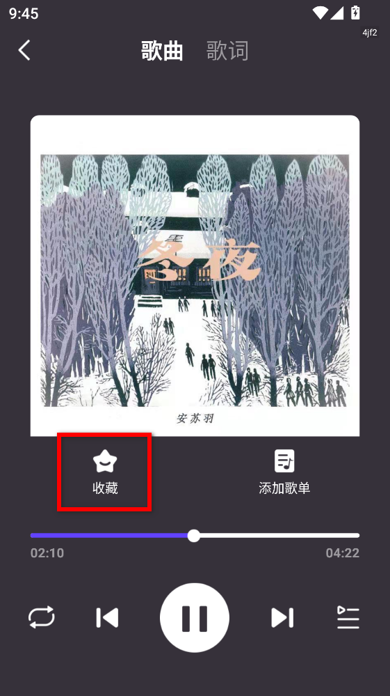 4.喜欢的歌曲可以在界面点击收藏,在我的收藏中可自己收听用户收藏的全部歌曲。