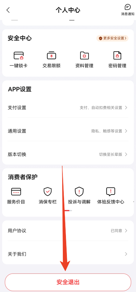 6、我们需要先退出当前账号,回到个人中心下滑点击【安全退出】