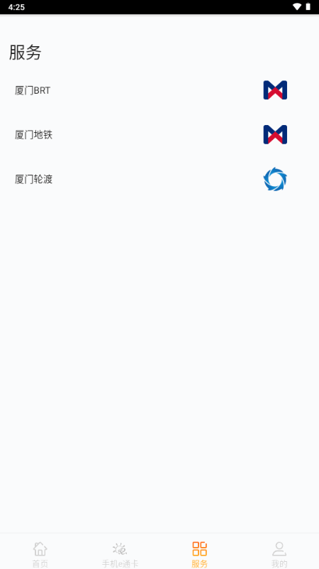 1、在e通卡手机版的服务功能界面下选择点击“厦门地铁”的功能选项。