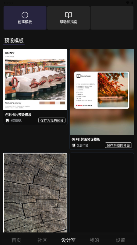 方式 2:快速模板:点击 设计室>从预设模板列表中选择模板,然后你可以基于当前模板继续修改设计或者直接保存