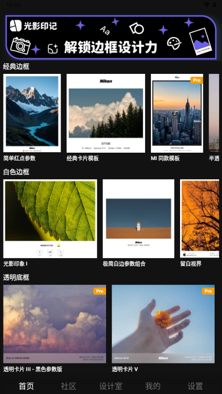 光影印记 APP 是一款功能强大的照片边框和水印设计软件,提供丰富的自定义功能。用户可以自由设计边框与水印,从样式、排版到图标组合,所有元素皆可自定义,软件内置 100 多款精心设计的模板,支持一键添加专业参数水印,还能自动读取照片的 EXIF 信息。