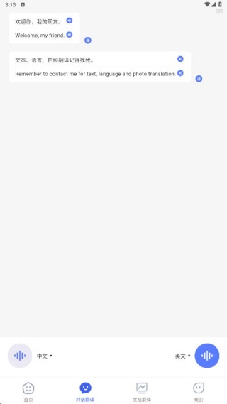 3、在对话翻译页面,我们切换需要语言系统,直接语音发送就可以翻译完成。