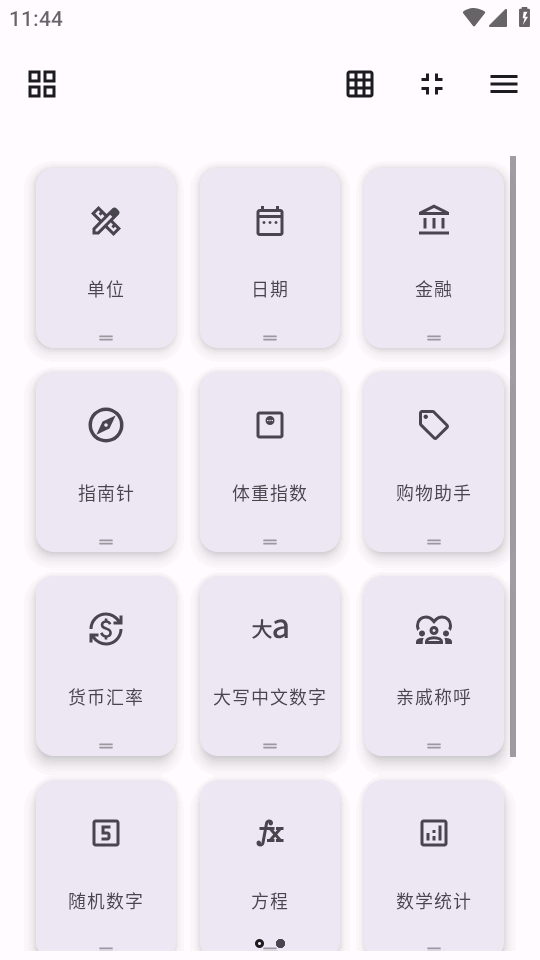 开源且极简风格的一款手机全能型计算器软件,多功能计算器app打开即可直接使用,除了全能计算还整合了非常多实用的功能,打开后选择即可操作,一款应用真正解决生活中所有计算问题,软件没有任何的广告,安装包极小不占用内存,手机必备的神器。