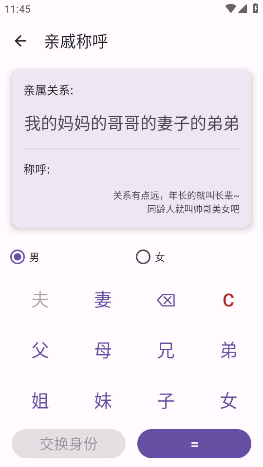 1、在软件首页向右滑动就可以看到所有功能,选择亲戚称呼。