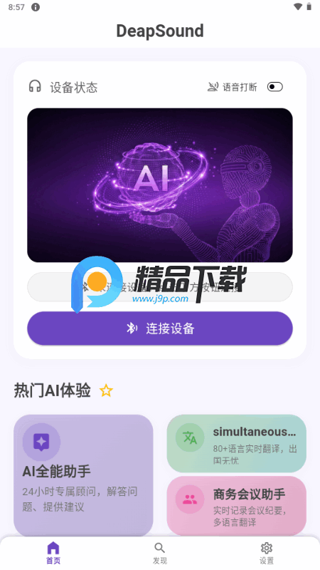 DeepSound 是一款连接 AI 蓝牙智能耳机的软件,专注于打造全能语音交互和跨语种无缝沟通的智能服务生态。它支持自然对话、指令执行和信息查询等功能,能够精准理解用户意图,适配不同口音和语速,实现高效语音交互。需要的可以直接下载使用。