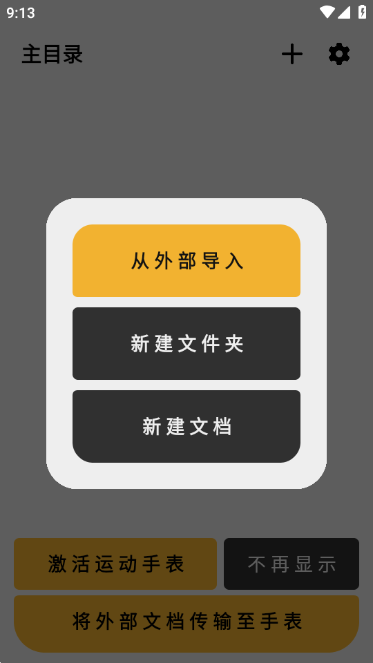 点击主页下方的“将外部文档传输至手表”按钮,在设备存储内选择要传输的文档。