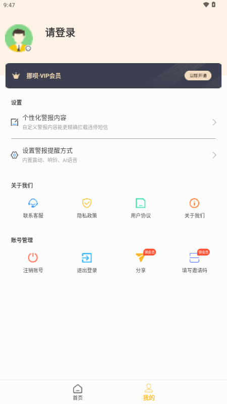2、在我的页面中可以进行各类设置,还可以进行账号管理,同时可以开通vip会员;
