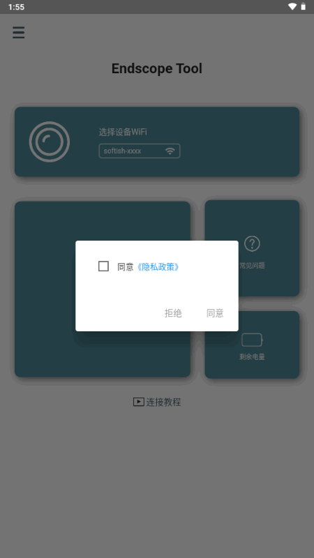 3.WiFi连接成功后蓝色指示灯长亮.然后打开EndscopeTool的APP上电量图标会显示电量格数.表示本产品与手机成功连接。
