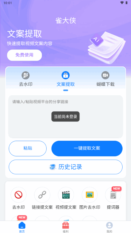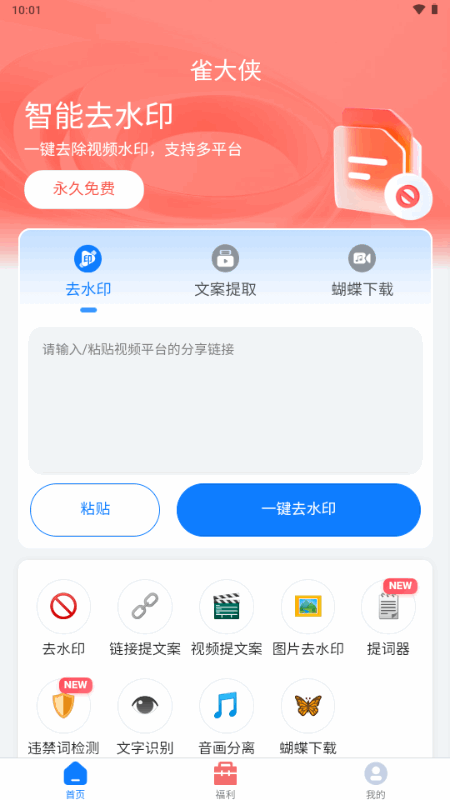 雀大侠是一款专为短视频创作者设计的多功能服务平台,集去水印、文案提取、提词器、语音合成和违禁词检测等功能于一体,为创作者提供全面且高效的服务。无论是去除视频中的水印,还是提取文案、辅助提词,或是检测内容中的违禁词,雀大侠都能轻松应对。