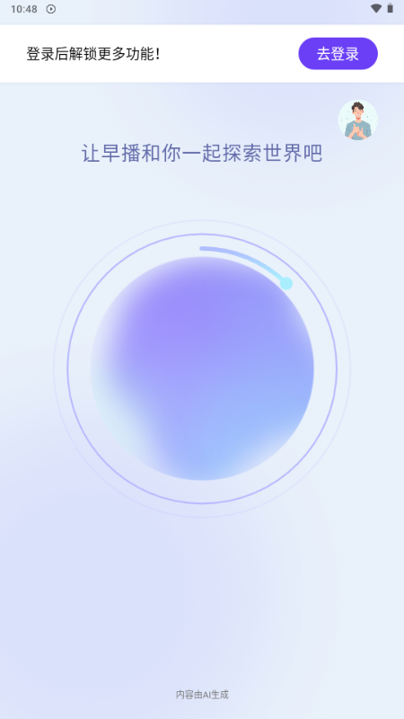 早播App是一款智能听广播软件,通过AI技术为用户自动播放高质量内容,无需手动选择或搜索。它涵盖热点快讯、深度话题和思想片段等丰富主题,一开即播,无缝连听,适合通勤、驾车、清晨唤醒、夜跑和安睡伴眠等场景。