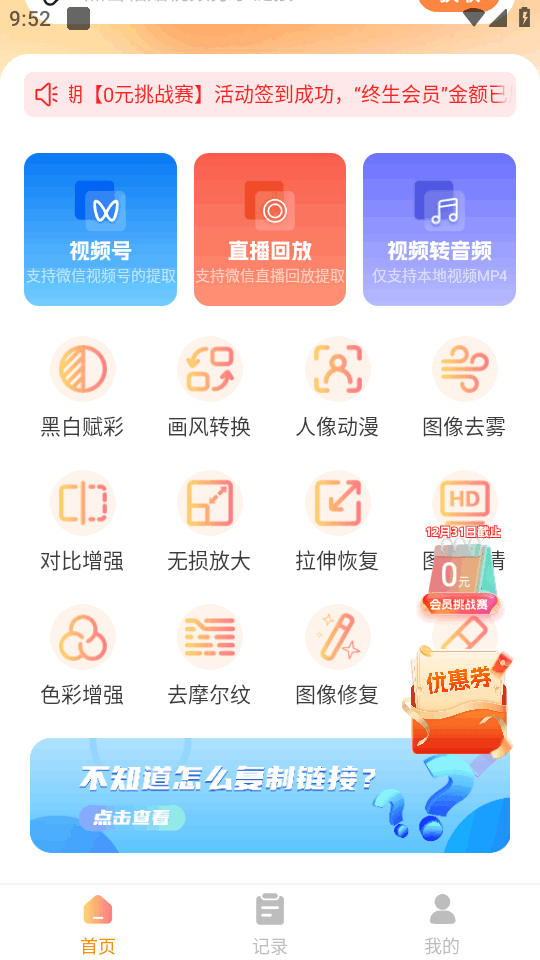 1、打开软件后,复制要保存的抖音视频连接,粘贴到软件首页后点获取。