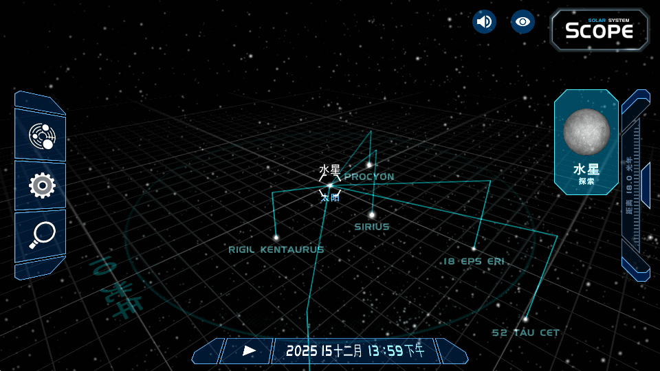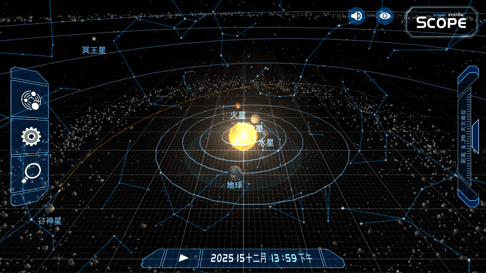 1、双击打开太阳系观测员中文版游戏,点击左边第三个按钮;