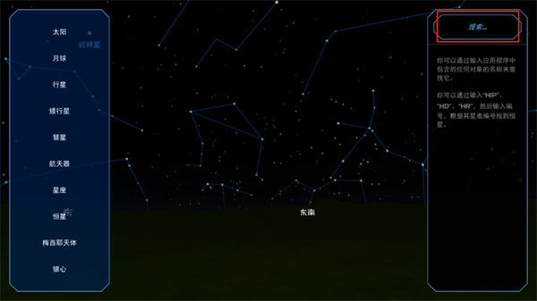 4、设备指向天空即可实时查看对应位置的天体分布。